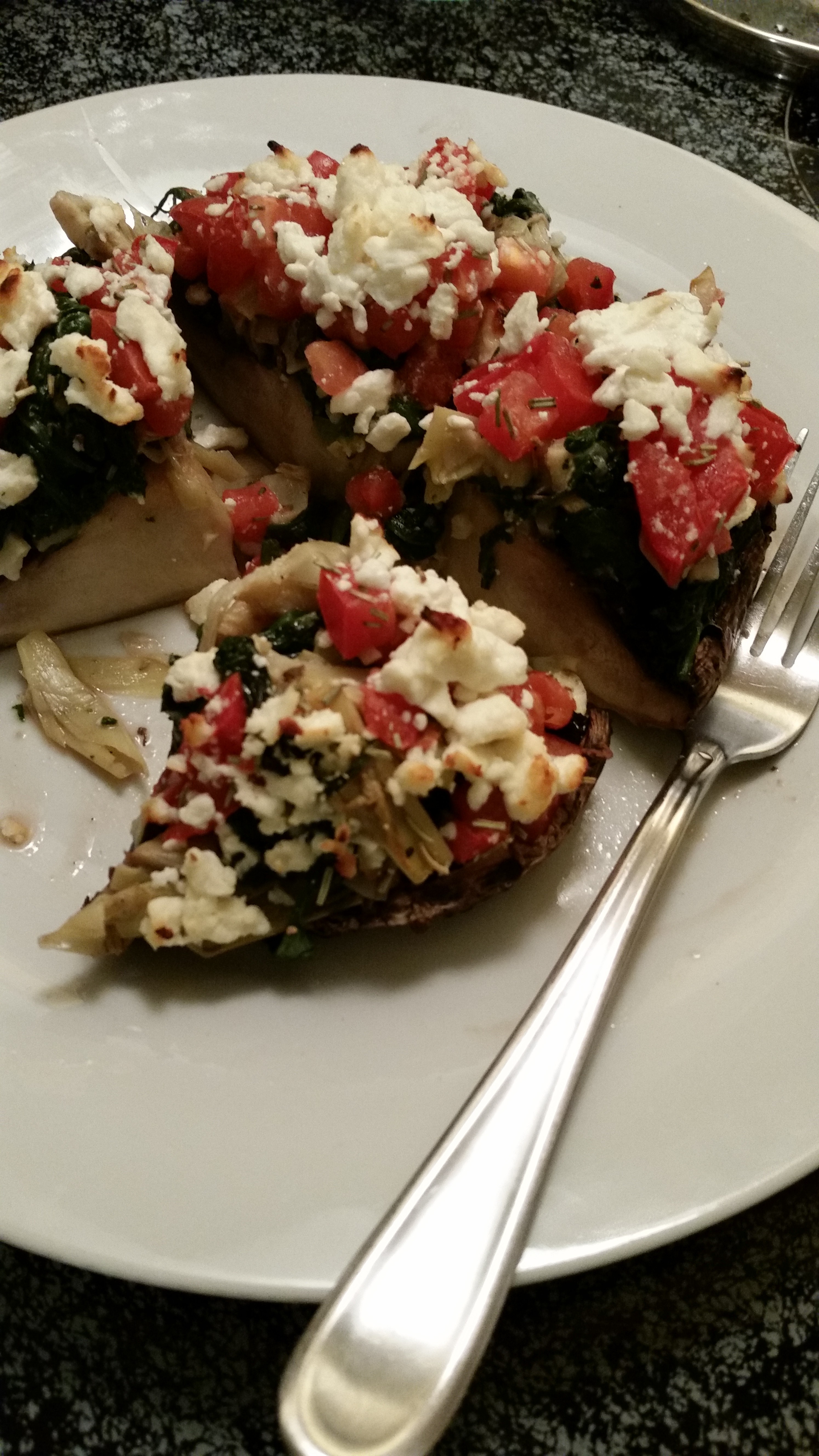 Grilled Mushroom Pizza with Spinach, Artichoke, Tomatoes & Feta